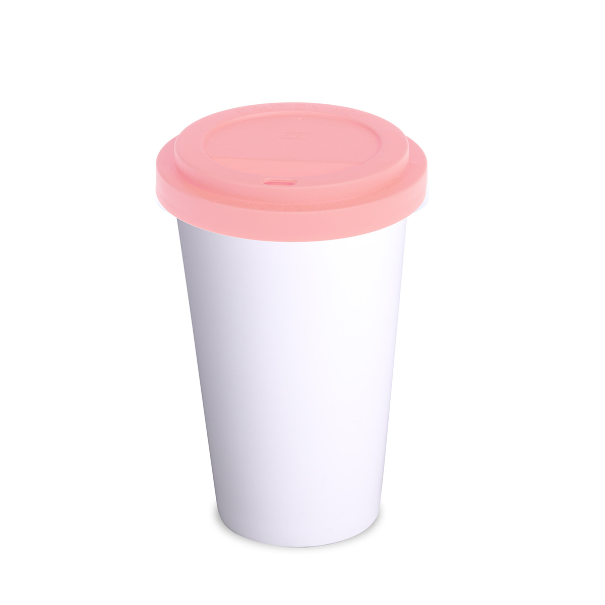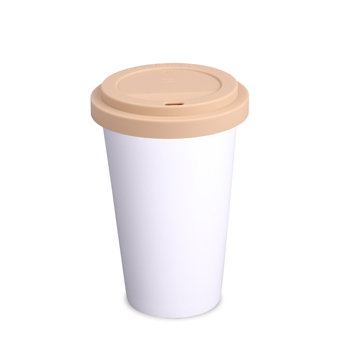 Porcelanowy kubek reklamowy z polimerową przykrywką chroniącą przed przypadkowym rozlaniem napoju. Model skierowany dla osób aktywnych, miłośników wycieczek i podróży. Dzięki rzadko spotykanej, wewnętrznej strukturze podwójnych ścianek z porcelany kubek ten charakteryzuje się podwyższonym poziomem izolacji termicznej. Korpus kubka dostępny w kolorze białym i satin black. Przykrywka dostępna w następujących kolorach: biały, pomarańczowy 021C, szary Cool Gray 7, granatowy 294C, brązowy 4695C, czarny, różowy 4064C, niebieski 2144C, eucalyptus 5493C, desert sand 2310C